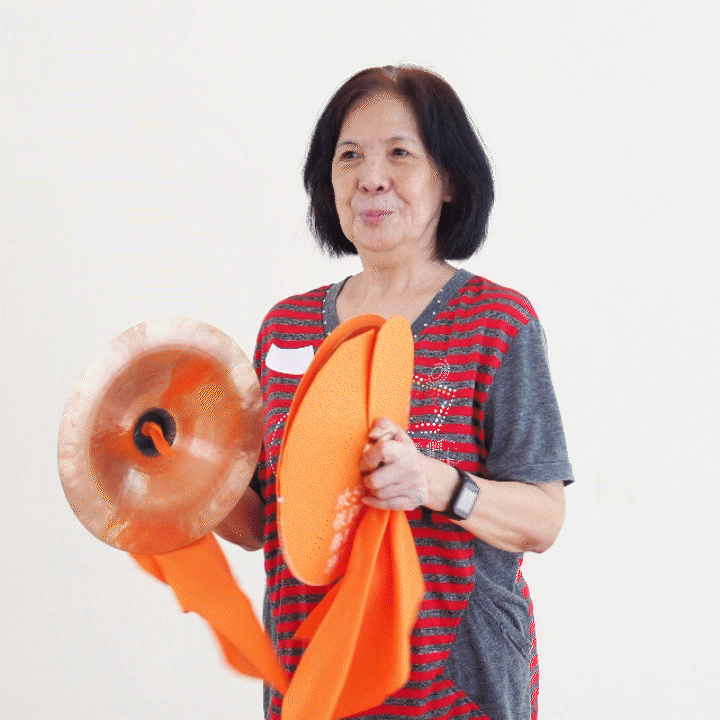 Lion dance moves were deconstructed, then integrated into familiar “Chair Zumba” exercises that seniors already engage in at Active Ageing Centres, imbuing these regular exercises with new meanings and a goal to work towards. It was a progressive programme, introducing the use of exercise equipment such as stress balls and hula hoops which strengthened their wrists and fingers. Exercises such as body twists, leg raises and arm extensions strengthened the same muscles the seniors will use in performing a lion dance.