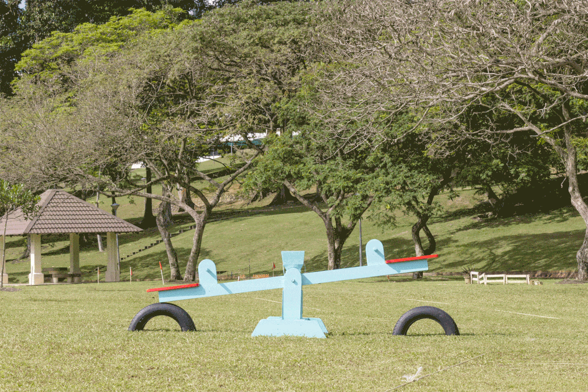 A bubble-blowing seesaw that encourages coordination and collaboration.